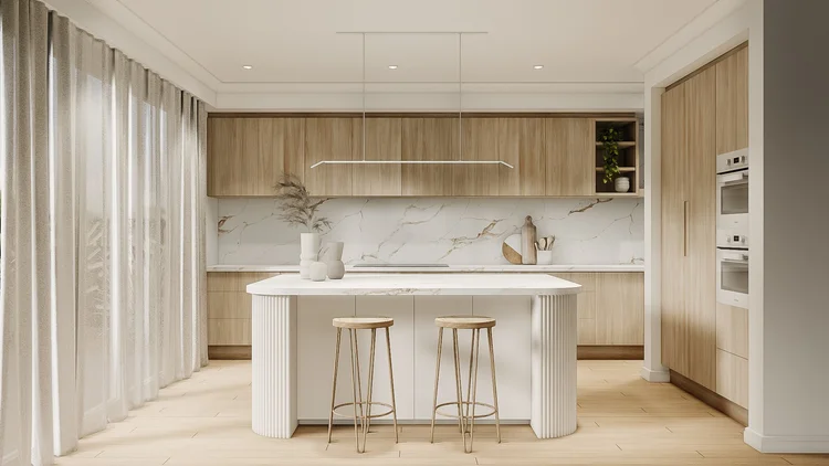 Tủ bếp kịch trần tạo cảm giác liền mạch cho không gian, giúp căn bếp trông gọn gàng, hiện đại và sang trọng hơn.