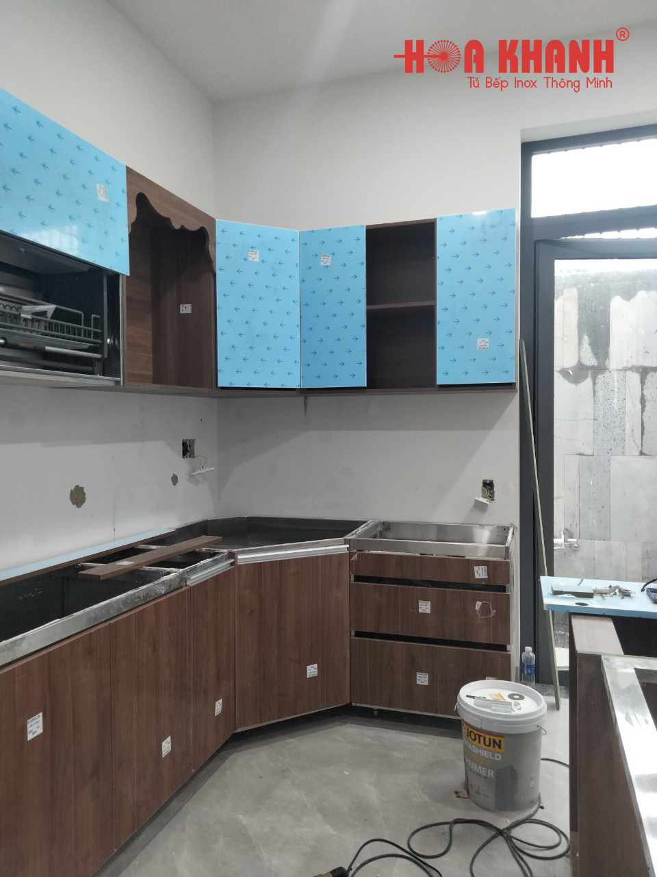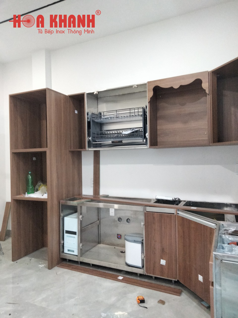 Nhà của khách hàng được xây mới và đang vào gia đoạn hoàn thiện. Khách hàng lựa chọn Hoa Khanh là đơn vị thiết kế – thi công bếp theo mong muốn. Đội ngũ thiết kế của Hoa Khanh tiến hành đo đạc, khảo sát mặt bằng, trao đổi để nắm bắt được mong muốn, sở thích và thói quen sử dụng của gia chủ.