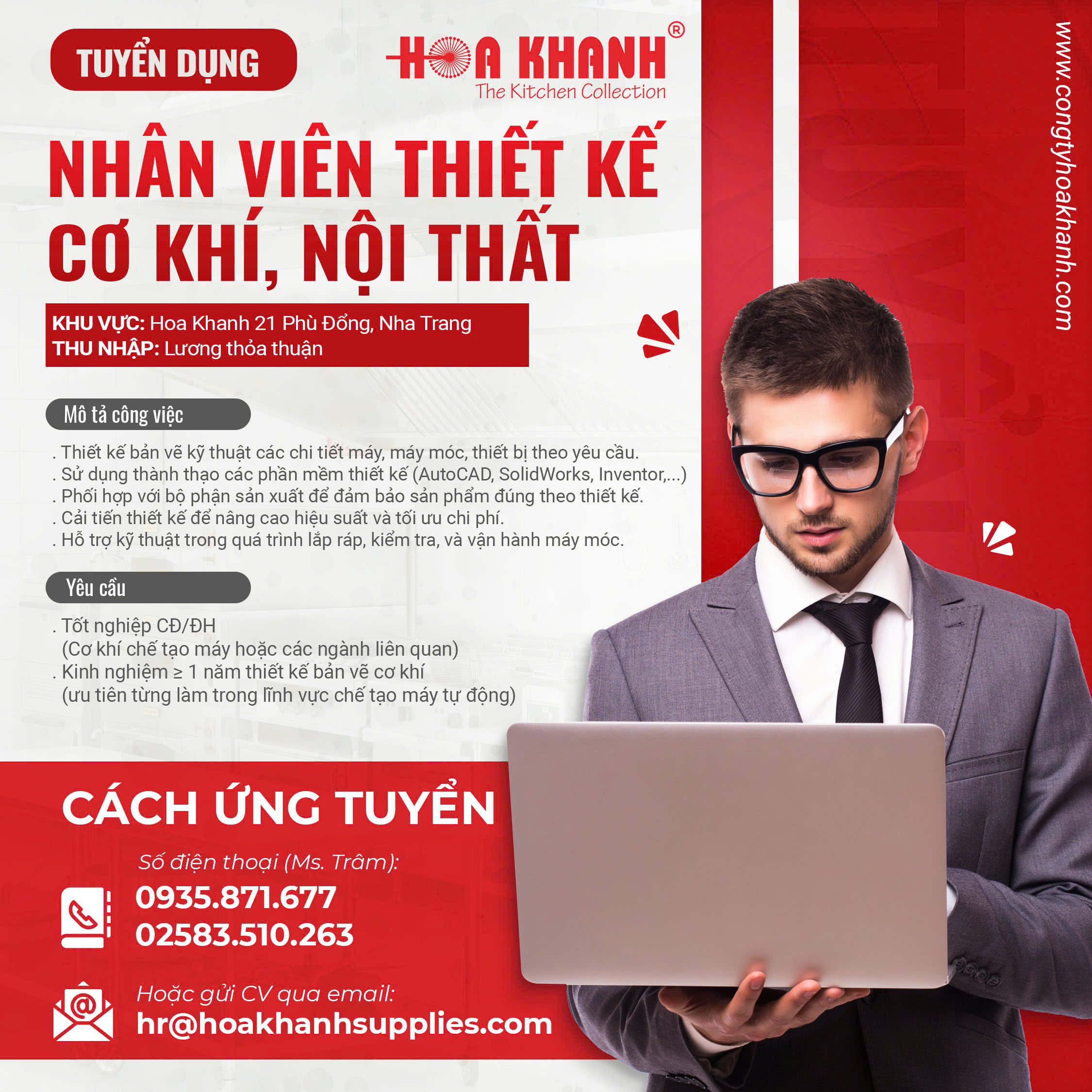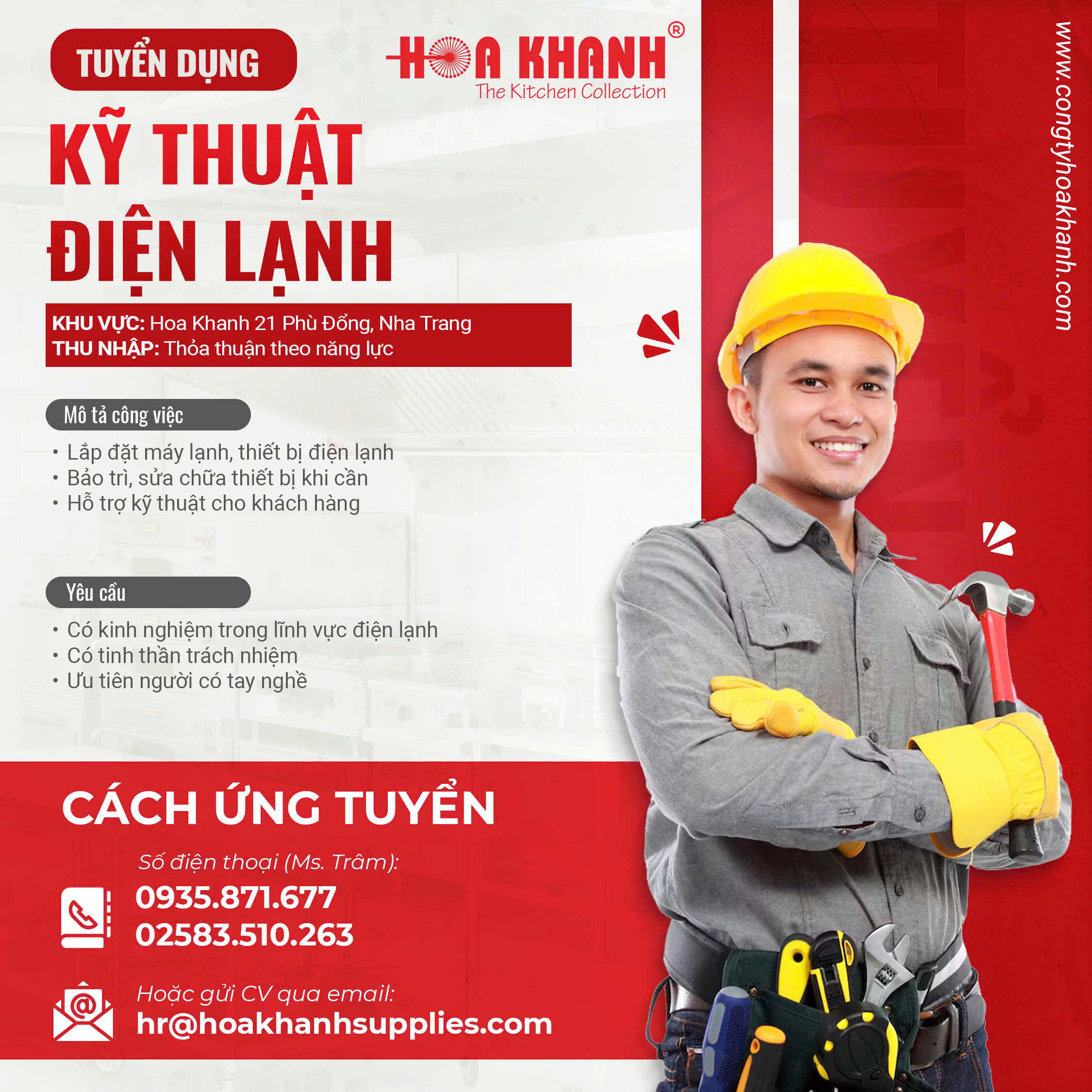 Nếu bạn đang tìm kiếm một môi trường làm việc chuyên nghiệp, ổn định và có cơ hội phát triển lâu dài trong lĩnh vực thiết bị bếp công nghiệp, đây là cơ hội phù hợp để gia nhập đội ngũ Hoa Khanh.