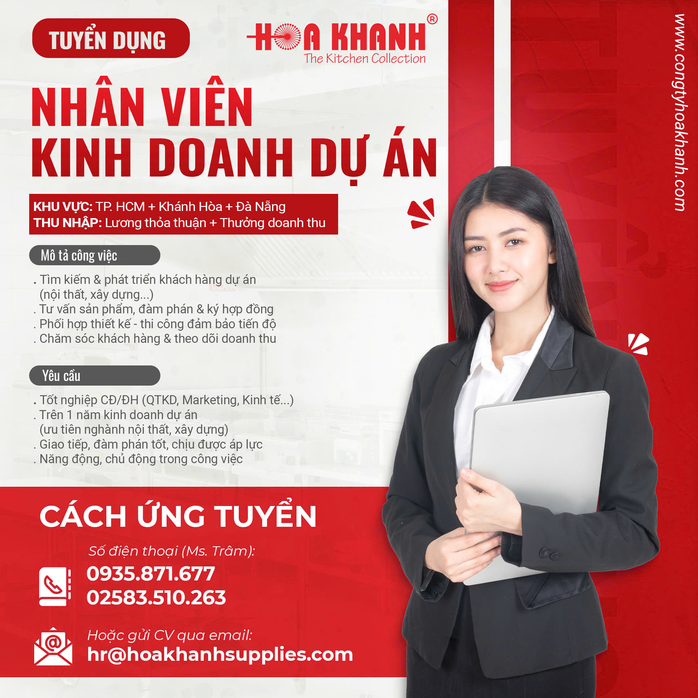 Công ty Hoa Khanh hiện đang mở rộng đội ngũ nhân sự nhằm phục vụ nhu cầu phát triển các dự án bếp công nghiệp, nhà hàng, khách sạn và resort trên toàn quốc.