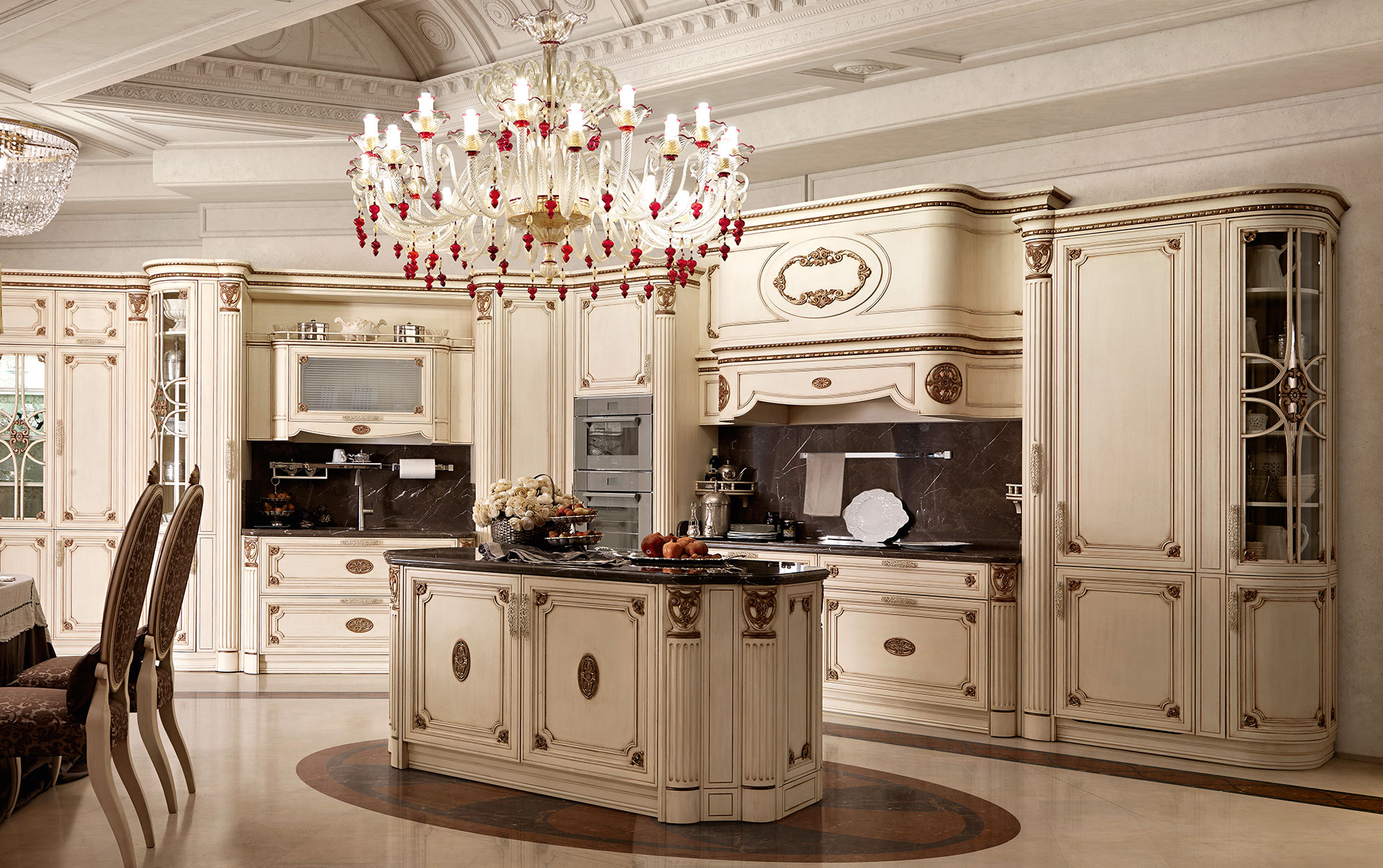 Tủ bếp gia đình mang phong cách tân cổ điển là sự cân bằng trong thiết kế giữa phong cách thẩm mỹ cổ điển và tính công năng hiện đại, đường nét hoa văn tinh...